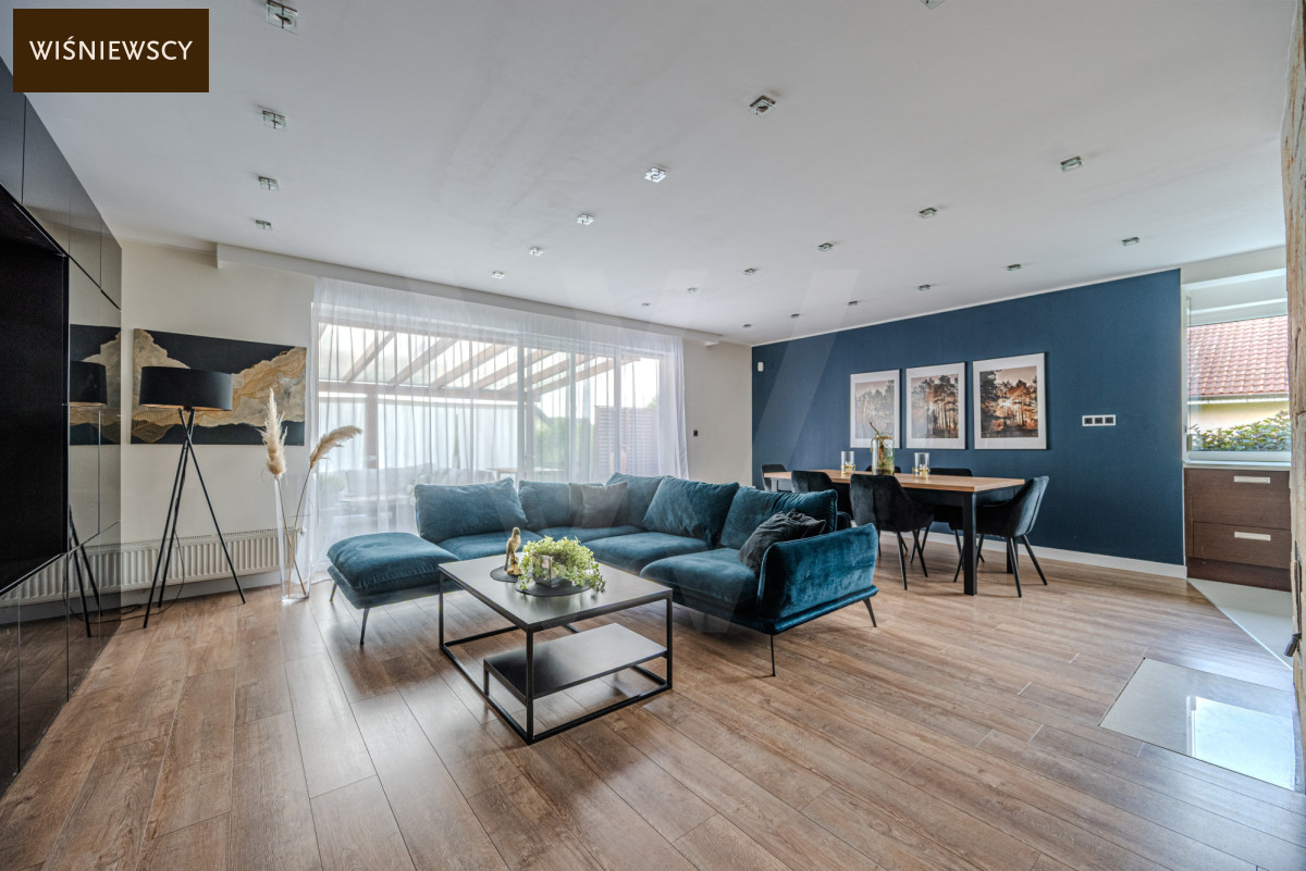 - przestronny salon z aneksem kuchennym i jadalnią - z wyjściem na taras i ogród,