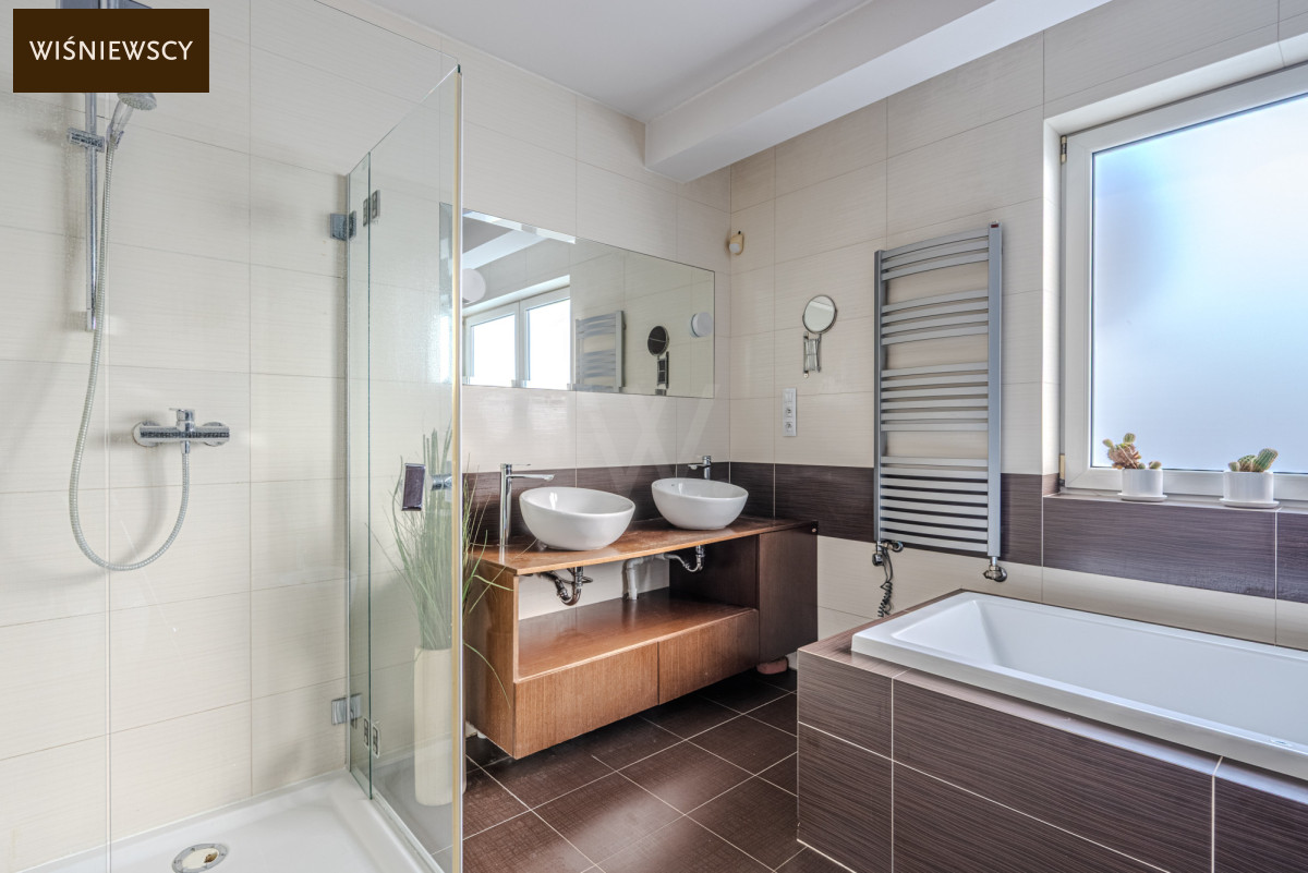 - łazienka z wanną i prysznicem,